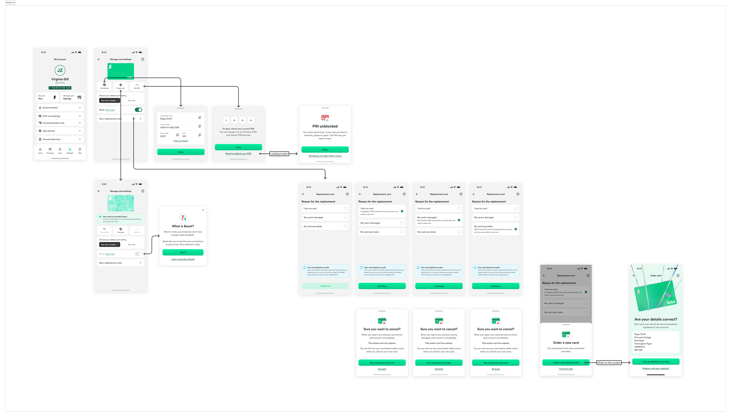 From entry points to card cancelling, we needed to cover every eventuality in the card’s lifecycle. When did users set their PIN? Did they pay for the card or was it free? How was the card activated? What happened if it was stolen or lost?